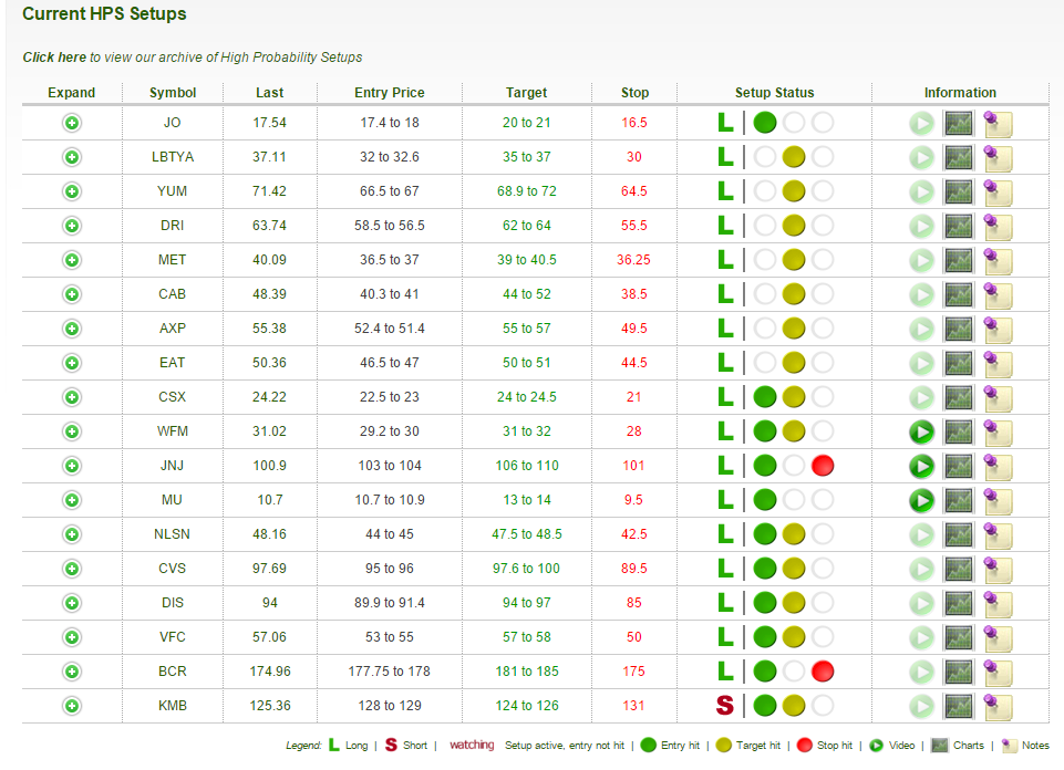 Before the trade show I put out a really in depth HPS watch list and it was based on a disciplined methodology that I teach every day on the site. It really shows a great example of the different setups we search out each week to trade. I am leaving those setups on the list for a few more days so some of the newer members can review those setups.
