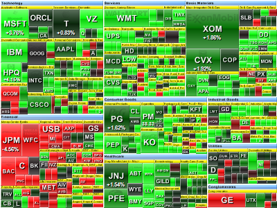 Above you can see the sector map for today, on the radio today www.daytradingradio.com you heard me talking about the weakness in the fins (Financials) on this map you can see in the lower left corner the Financial sector. the positive