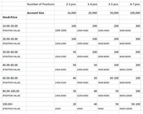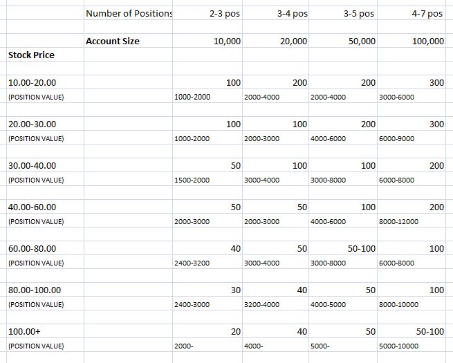 The first is position sizing. This chart gives you an idea on how I like to position myself. This is not a rule but a guide. This is not set in stone and I find myself stepping outside these boundaries on occasions mostly due to market conditions, but in some cases over lack of discipline.