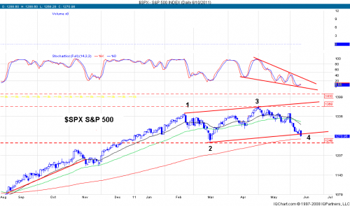 The market as of Friday has been in a quick 2 week pull back, overall sentiment has been extremely negative and stochastic are oversold both on the daily and on the 60 minute chart. We are on the lower channel line (possible breakdown on Friday). If I tell you I am convinced that we are going lower then I will fall right in line with the majority and we just discussed earlier that history has proven the majority wrong more often then right.