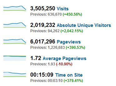 I wanted to share some of the stats with you for just this year compared to last year. The numbers in bold is from Jan 01-June 01, 2011 (6 months) and the previous lower number is Jan01 to June 01, 2010