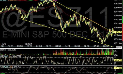 This is a perfect example of a reversal wedge pattern, we are in the process of breaking out to the upside, this pattern usually breaks out about 65%-75% into the pattern. I am looking for a reversal early morning