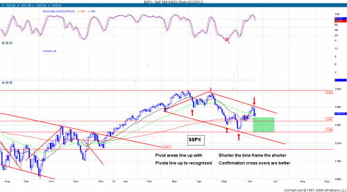 Been here in the office over 10 hours today scanning and charting 100's of stocks This is something that I do for the members of Daytradingradio, The research is designed to bring into focus quality stocks that nearing defined areas of interest, be it trend lines, Support or resistance or just a higher value area. The wild cards in the market are the news events that can appear at any moment, and as we all know news is the major focal point of the markets these days. Thursday the markets reacted to a very negative Philly fed Number this came at very important technical resistance level in the markets and markets sold off hard from this point. The overall picture is better then what you would think listenng to the situation in both Europe and here in the U.S.