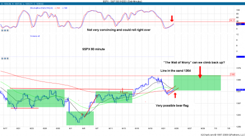 Fridays move up was not convincing but did act perfectly with the oversold 60 min stochastic oscillator but this is looking more like a bear flag then a push higher.