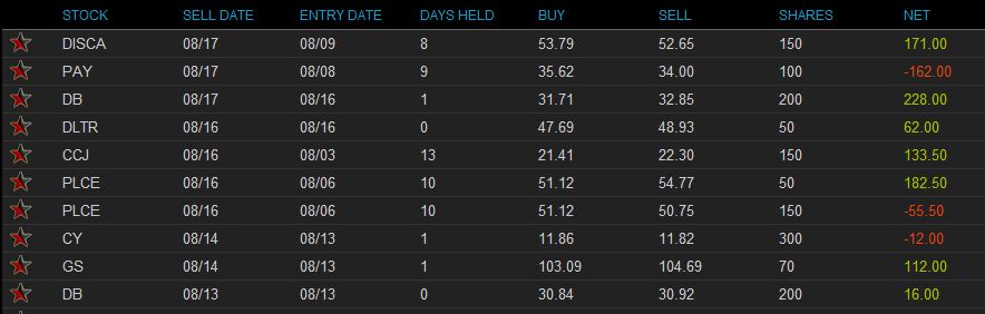 PLCE sold most before earnings and help a small amount earnings were good and would have made a lot more. But the earning hold has been most of my losses on trades the HPS set ups work out close to 75% more then half of the 20% losers are from holding into earnings.