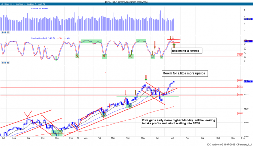 Expecting more upside early in the week. But will be taking that opportunity to lighten up on longs, We had a fantastic trading week. All starting with the perfect 60 min oversold chart as long as it keeps setting up I will continue to trade off the signal. One more rip higher will give us another dual stochastic sell signal and I want to start my SPXU short term swing. Short term is the key here. With Bernanke pushing out the time table on the tapering the market will not pull back because of fears but more likely because its tired and needs a rest. With so much talk recently of the possible easing of the stimulus, It will become a "priced in" event and by the time that event comes. I would bet all comers we will move higher soon after the announcement.. and again this is off in the distance 2014. As to next weeks watch list, Not much has changed. We have a lot of flags developing and quality is where you want to be. KRFT continues to be my best bet going into next week. and all the other flags are outlined in the video. $A, and $DNKN will also be in focus next week.