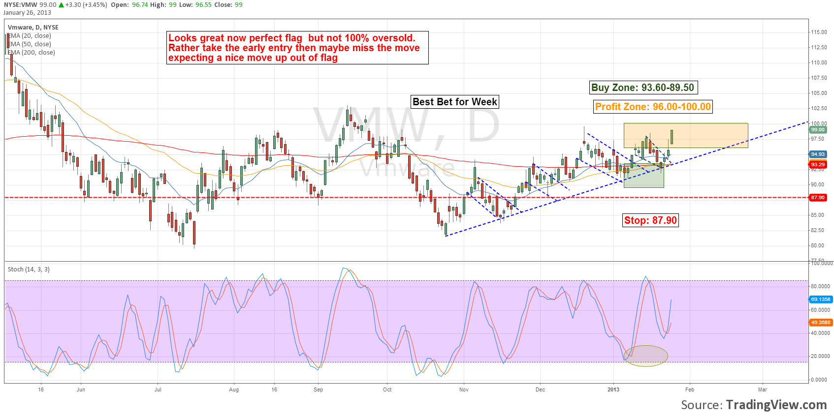 The pullback usually take the shape of a channel with 2 defines channel lines. In a bullish flag we want to concentrate on the lower channel line where we have the best risk reward scenario playing out. Recognizing what a flag looks like is very important and I have focused on them over the last 3 weeks so below will be those examples.