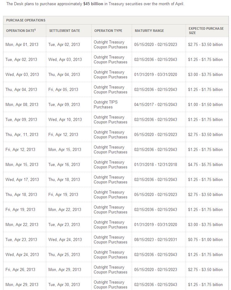 Well all time highs have arrived.. Now what.. seems like the market been waiting for this for week's now. I still hear a lot of negativity in the markets even using the new high scenario to spark a pull back. Now that crossed my mind and typically it is a method I trade (Sell into the breakout). But it just doesn't feel like the case here. This of course has to be taken on a defined time frame. meaning I am not expecting a string of positive days for the next 10 sessions but a healthy market that is feeling the beginning stages of over exuberance. This could build over time and when we can't hide from the fact that everyone needs to be in the markets.Then a big red flag goes up. Ask yourself is it better for the economy if the markets to continue to grind higher or better if it pulls back? Ask yourself this to, do you believe the fed has an effect of the markets? Well April brings the same action as last month and even if you are skeptical on the effects of the POMO on the markets. You have to at least think that there are a vast amount of investors that feel a bit safer knowing the fed likes to talk about how "They are prepared to do what it takes" I feel this is the true benefit of this bond buying. They established a time line and a set of rules on this open ended QE to infinity program that we are still a ways from. What I am saying is the music is still playing loud in this musical chair market and next week I am still very bullish.