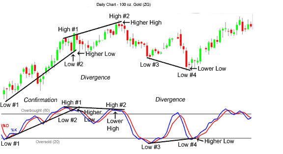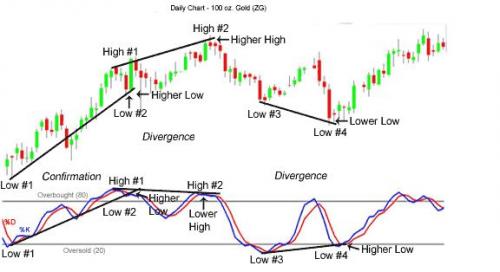 Example of both bearish and bullish divergence (Print this chart to remember both)
