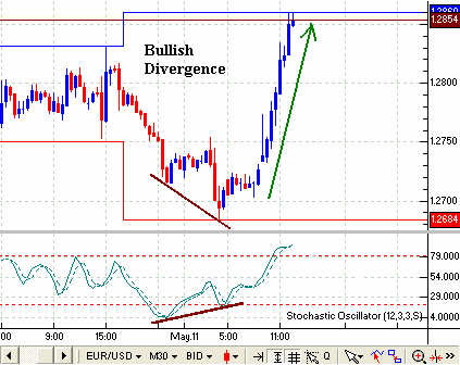 This week we saw a text book Lane divergence on the 60 min time frame. And a pure divergence is not just an oversold or overbought stochastic reading it is a confirmation or a change of momentum before the price changes.
