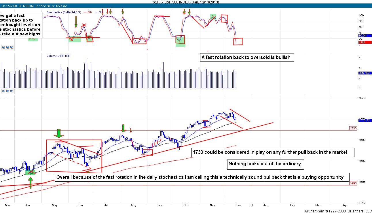 Because the action appears technically sound and I like the fast rotation in the stochastics I am not expecting this to get to much further before a move back to the highs.