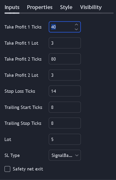 Under the settings tab, you’ll find various user-defined parameters that can be adjusted to suit your specific trading contracts. This strategy was developed with futures