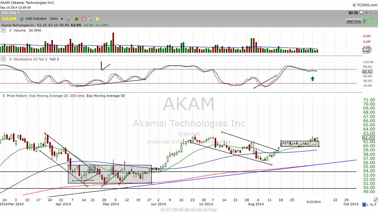 (AKAM) See the daily stochastic really showing strength. I love this stock long term but the profit is getting big and will probably take it off if we get a nice pop tomorrow.
