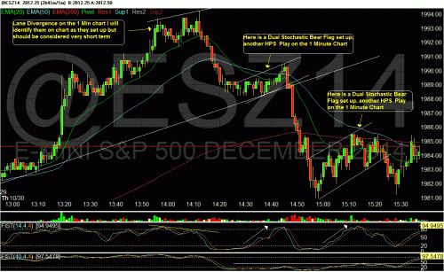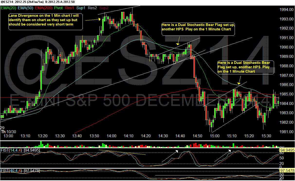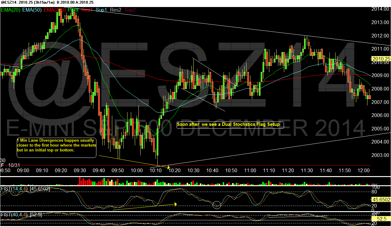 I really enjoyed looking for the 1 min Lane Divergence's on the es futures chart Thursday and Friday and I will continue to identify these and begin boxing them out on the chart. along with the Dual Stochastic Flags setup.
