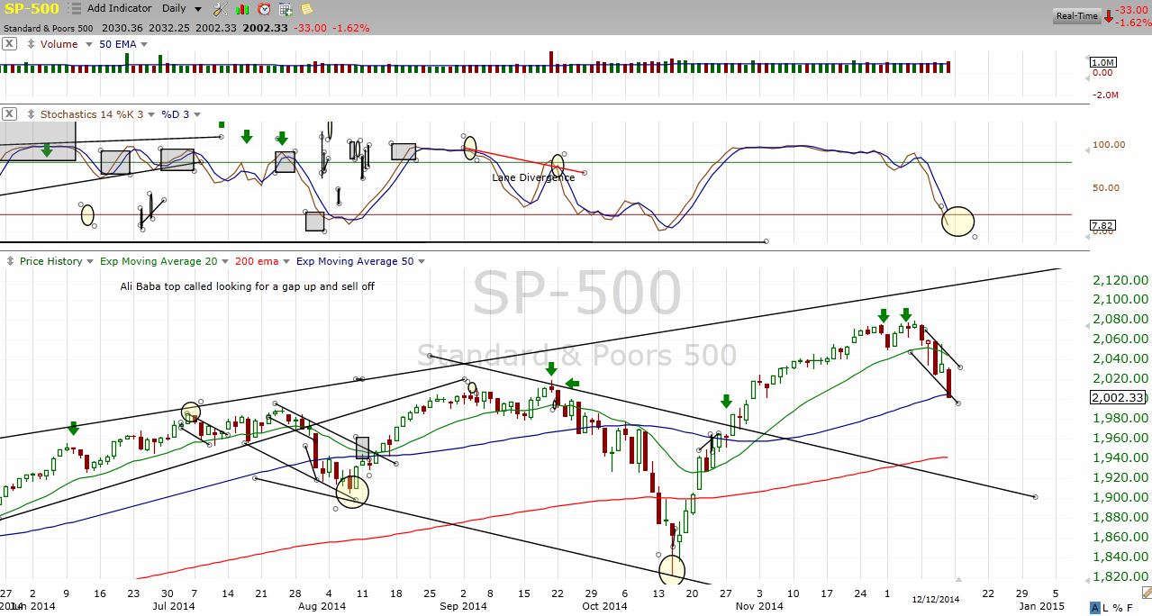 This Year leading into Christmas and the first time in 3 months we are back oversold on the daily stochastics. This combined with the 60 Min time frame oversold makes it a multiple time frame buy signal. So this signal alone is something that is needs to be watched and being right before Christmas..Well like a said seems like a gift. I will be watching for a large rage candle to Hammer out the bottom. This Years