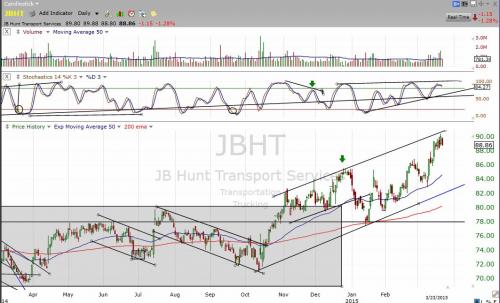 As a added bonus JBHT is pushing up against a large channel line and is coiled up for a downward break something to watch on the short side. The short in the IBB worked out great.