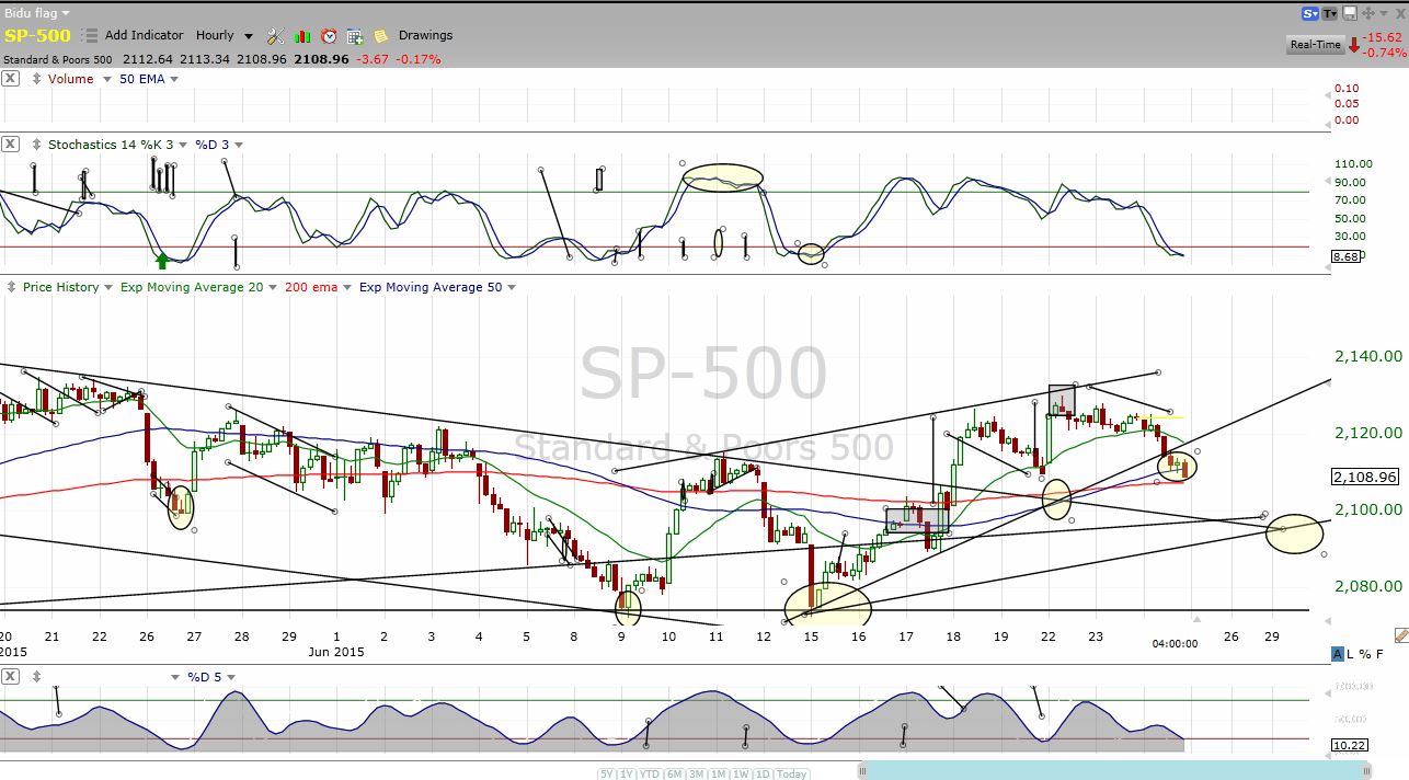 60 minute time frame is oversold and this has been a great timing tool but Greece overhangs everything. The charts have set up in a nice rising wedge pattern out of the larger channel breakout. The pullback today was expected but the energy seem a bit intense. Levels below on spx 2098-2095 look very nice. But not calling a perfect touch as the 60 min and 5 min are setting up for another move higher.. So recap.. Daily embedded and 60 ready, but many stocks over extended. Feel Greece will be a factor in the next move but not guessing how that will play out.