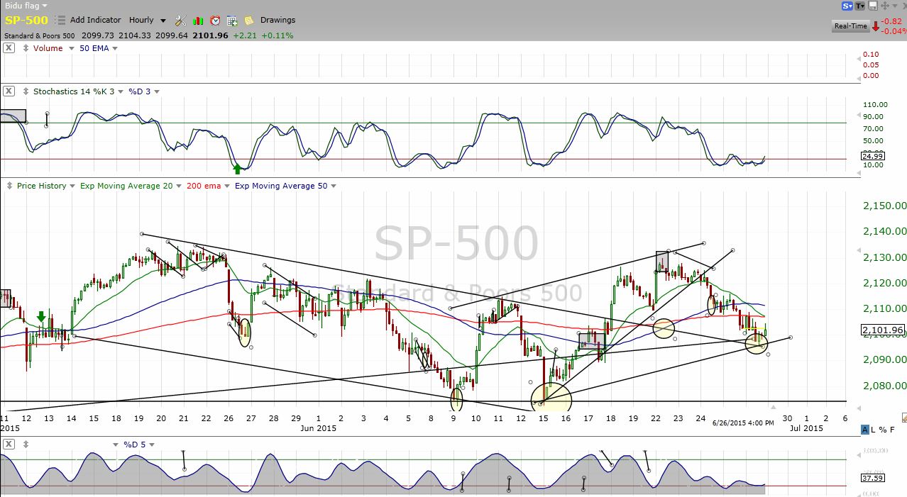 Greece and China will have an effect on the markets early this week and because of that I feel the risk of calling a technical move is much higher then average. There are a lot of reasons for a bigger pull back in the markets and a lot of people looking for that pull back. Could Greece be the catalyst? I don't think we will get to see the effects of a Greek exit but in either case this week will be harder to predict. Sunday when futures open we will give us our first clue on the effect of the recent events discussed in the video.