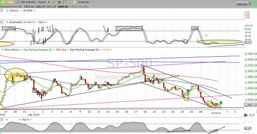On Sept 24th I was looking for a nice bounce based on the 60 min time frame and the market gave us that and a nice follow through day. But now we have another interesting set up, one that I am calling for a decent rally starting tomorrow. I am not looking to call size but would not be surprised to see a candle that mirrors the one we had on August 26th after the corrective move.