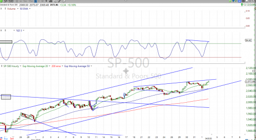 As we closed out Friday I could only watch the market squeeze higher and feel the emotions of a late nineties market, Where you could buy every dip and not even think twice on it. So the ONLY reason I would attempt a short up here is that I love shorting into strength and it is impossible to catch the top unless you pull up your britches and take a shot. I will mention the slight possibility of a divergence setting up on the daily but this is still not confirmed and a very hard call to make.