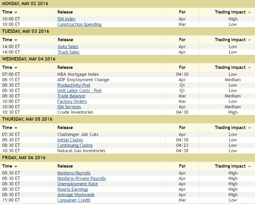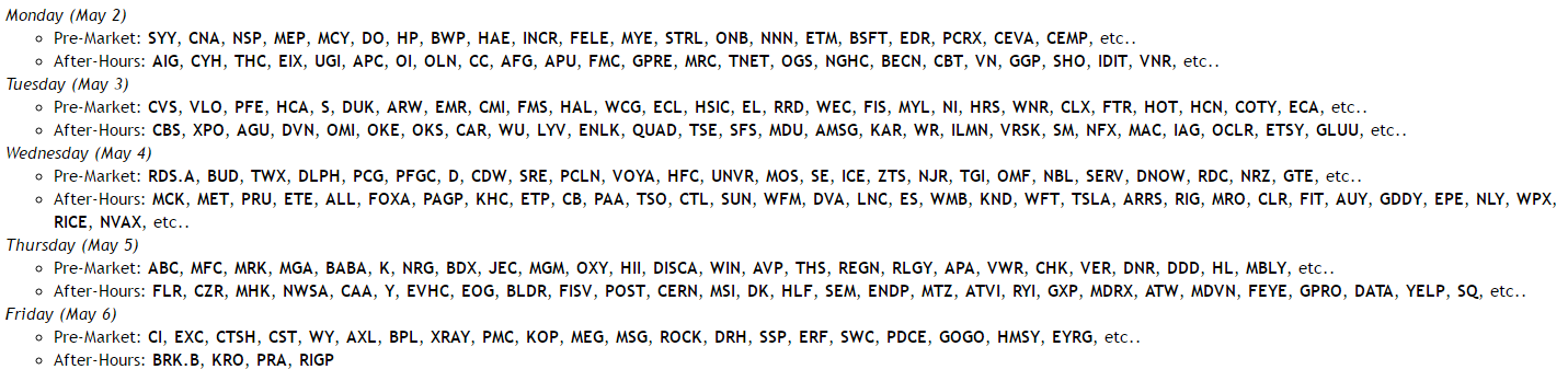 As for next week here are the earnings Monday (May 2)
