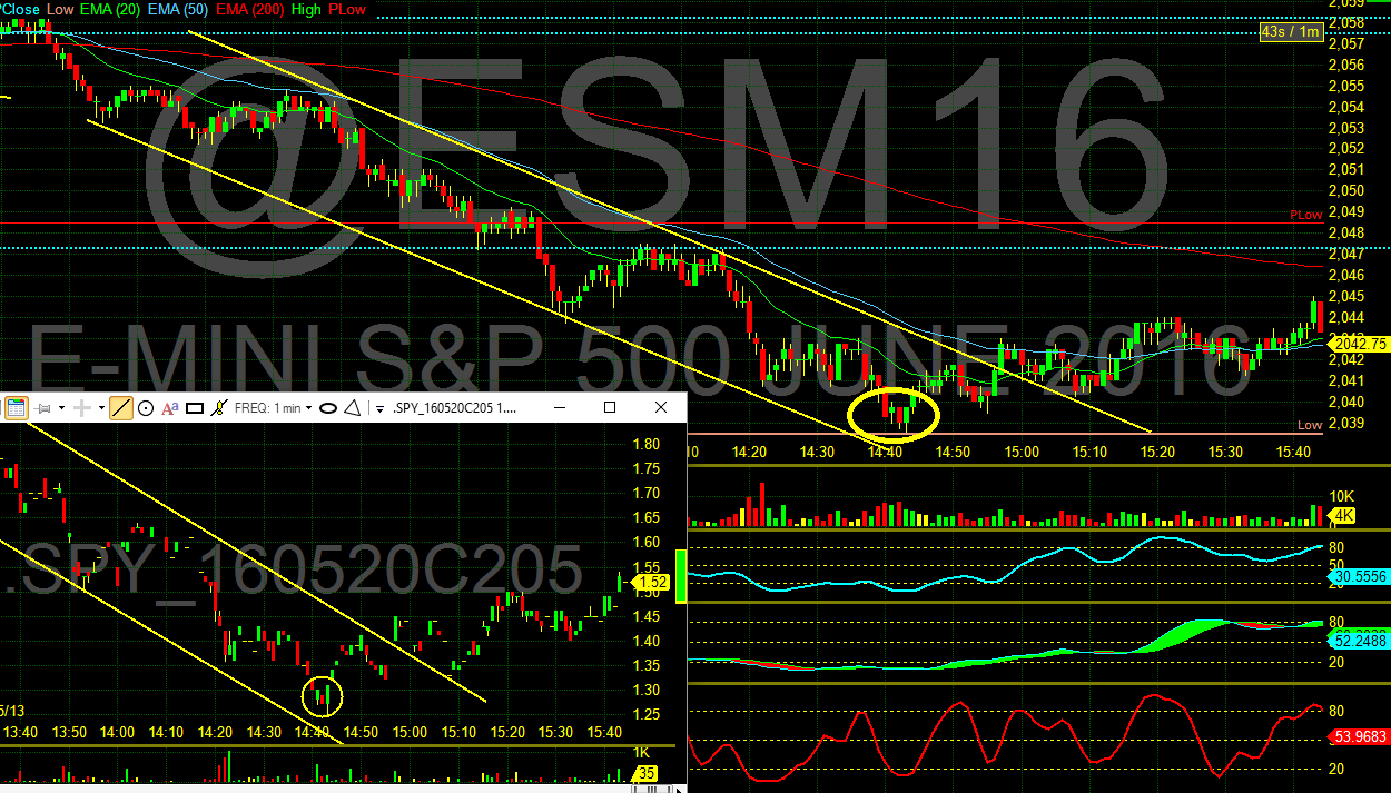 Here is an chart we used today with both the S&P Futures and the Spy Options