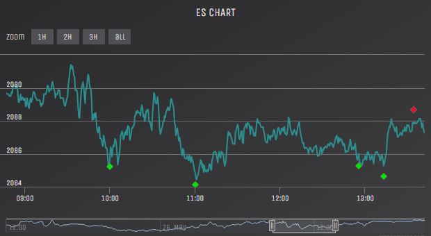 Today there were only 3 5 Minute signals on the RAMBOT 2 Buy Signals and 1 Sell if you refer to your es chart or mine below the thiker outlined circles and squesr represent the 5 Min RAMBOT signal and the thinner ones are the 1 Min signals you can see the results as plain as day