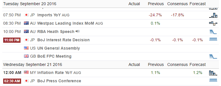 Tuesday Night-Wednesday... After the disappointment of the last BoJ meeting, when the central bank did not expand stimulus to the extent expected by many in the market, Traders this time around are looking for another shot at stimulus. If that doesn't happen well the overnight markets will be very active. That report gets released 10pm est Tuesday night with press conference following at 2:30 am