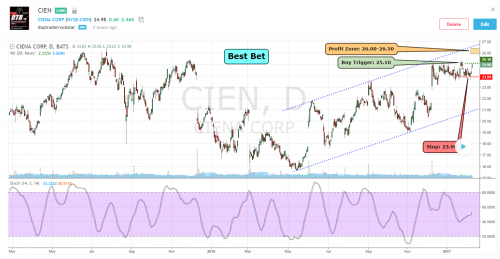 Next week I am looking for a continued push up in the markets. We need to be vigilant in case any market moving news hits over the week but if all goes smooth I will go out on a limb and call for a gap up Monday morning. $CIEN is my Best Bety for a move to 26+ added to my position this week and added to many others. The Spy call options trade yesterday, till today was spot on and even the exit was perfect. The overall trade returned about 50% on money