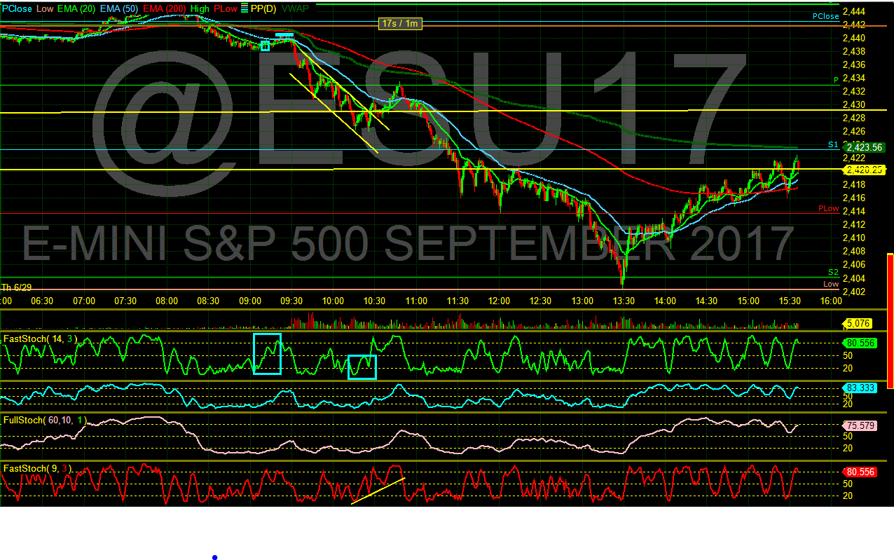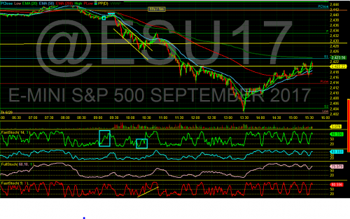 Let's start off by saying the HPS watch list is out early this week as I will be on the road tomorrow heading down to see RPM. The S&P had a nice sell-off midday and is in the process of bouncing now, The million dollar question of course is will the dip buyers come in fast or wait till next week..or god forbid we have an another down week. Today I initiated another Spy call trade as the market sold off hard. The reasoning is on the chart below, we had a great lower trend line lining up with another rising trend line making and HPS setup at this level. so picked up the JULY 21 17 242.00 Calls for 1.88. (These alerts go out to member of DTR)