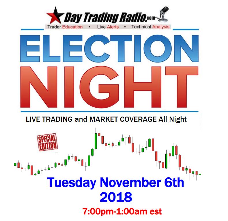 Going to have a great show for the Mid Term Elections, A normal show like always during the day, and a special Guest filled night show where we will be focused on trading the futures. Look for the show to start 6pm-7pm est and go past midnight. The futures market will be more active and should give us a lot of trading opportunities.
