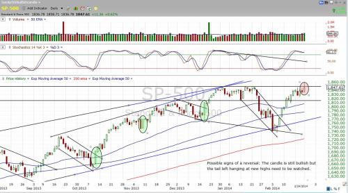Markets started of the week in a strong fashion but ended the day off the highs enough to leave a candle that could lead to some follow through tomorrow to the downside. I discuss in tonight video how this candle is still considered bullish but with all the focus on 1850 and seeing the market close back down under that level it will be a good mark on the chart to watch. There are some stocks on the other hand are not that hard to read and We have 2 Best Bets and a little review of the great flag called this week in ATK which was up over 5 points at one point today closing up 2.68. ATK looks like it has move upside to go.