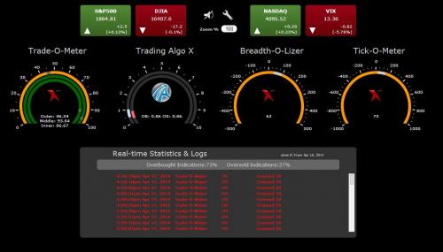 Trading Algo X is a 3rd party premium indicator from our partners at Trading Algo X Their proprietary algorithm performs analysis on the underlying 500 stocks of the S&P500 index in real-time, looking for topping and bottoming patterns in each stock. The aggregated results are displayed as real-time over-bought and over-sold oscillators, marking the high-probability reversal areas in the market with vocal alerts.