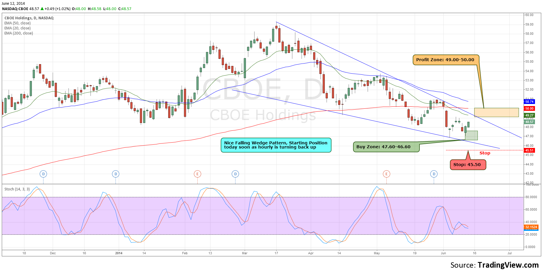 This Next setup is another falling wedge pattern similar to the current CBOE look for the same type of performance