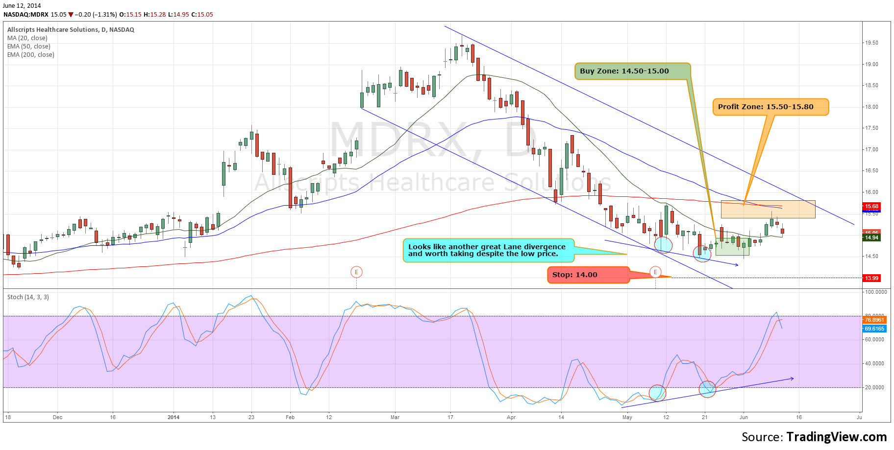 We continue to jump on any Lane Divergences that cross my path this past week has been great for these. If there is one great technique that does not have you chasing a stock it the "Lane Divergence" I have a lot of education on this important indicator on the site.