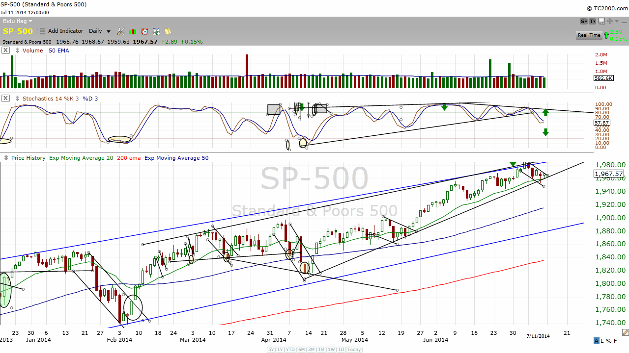 I have to tell you there are a lot of great channels that have appeared in the market this week. The stocks have pulled back into lower levels of these channels and the combining daily oversold stochastics add a lot of credence to an upside move. The first part of the video really discusses how the daily pattern is a text book rising wedge pattern but the recent pullback has set us up into a very bullish flag on the underlying rising trend line. If this wedge plays out to the down side. ( and i am not totally convinced of that) Then we could first see a nice move higher out of this flag and then a failure to make new highs and roll over breaking the underlying trend line. Really hard to say I am happy with the recent pull back yesterday (Thursday) as the market gave us that scenario on a tray. The 60 min got oversold and that worked line a charm also. Now the recent trade has been lacking in any additional selling pressure. Making a bounce early next week highly likely.